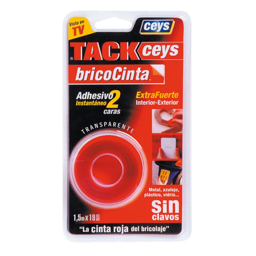 Cinta doble cara Tackceys. Fórmula especial de adhesivo puro. Sin cargas, disolventes ni soportes textiles o de espuma. Máxima resistencia física y química.
